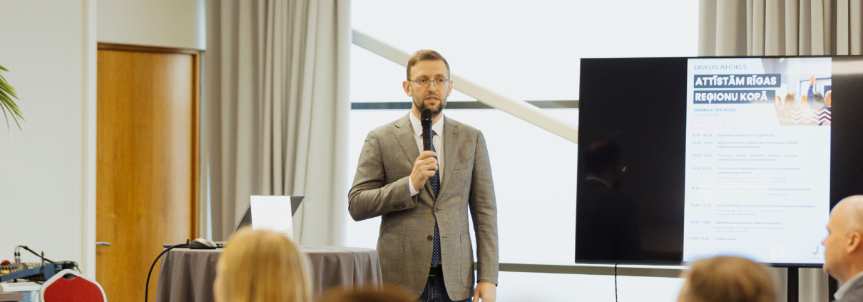 Diskusiju atklāja Rīgas plānošanas reģiona administrācijas vadītājs Edgars Rantiņš un Jūrmalas domes deputāts Mārtiņš Kagainis, akcentējot sadarbības nozīmi starp reģiona pašvaldībām un uzņēmējiem.