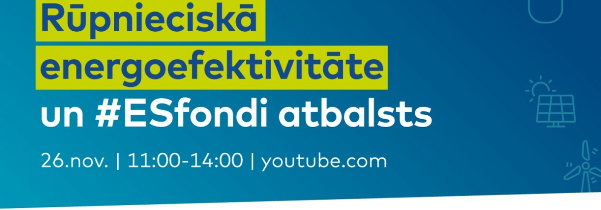 Vebinārs “Rūpnieciskā energoefektivitāte un #ESfondi atbalsts” notiks 2025. gada 26. novembrī no plkst.11:00 – 14:00 tiešsaistē: https://youtube.com/live/KHUbIl4kLK0.